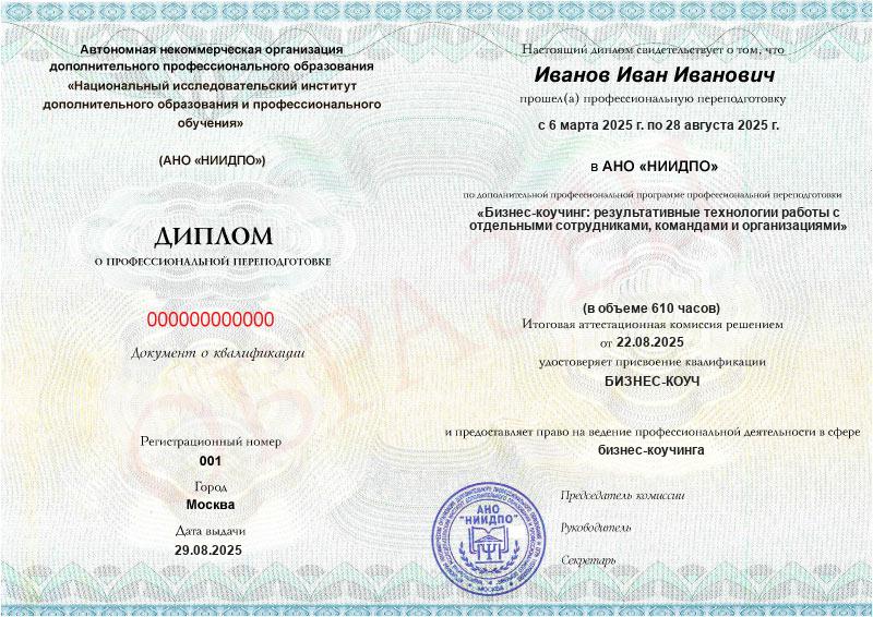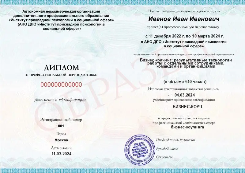 - Диплом о профессиональной переподготовке с правом на ведение профессиональной деятельности