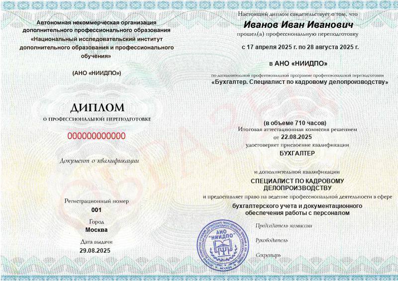 Да, документы оформляются на бланках с защитой от подделок, заполняются на русском языке, в них ставится печать АНО «НИИДПО».