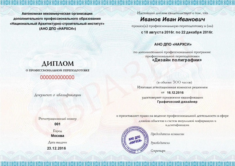 Диплом о профпереподготовке (для программ длительностью от 250 ч.)