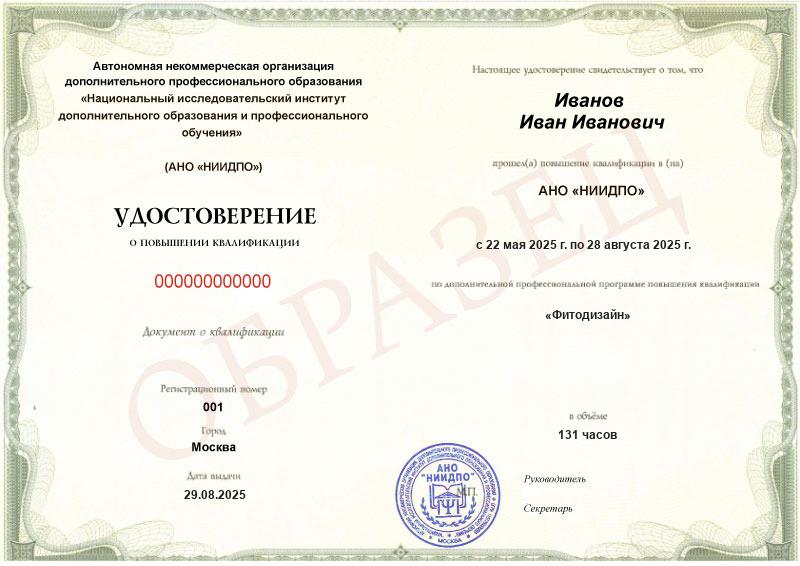 Учебный план программы повышения квалификации «Фитодизайн»