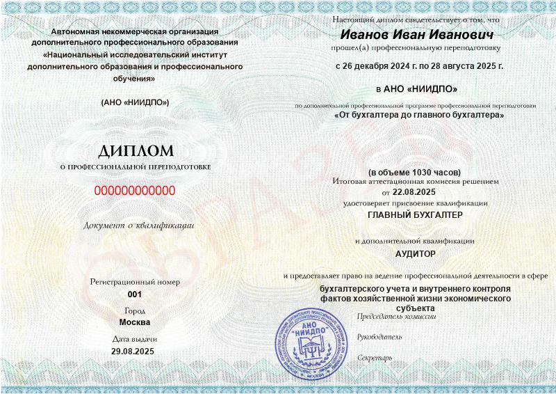 Обзор программы профессиональной переподготовки «От бухгалтера до главного бухгалтера» с присвоением квалификации «Главный бухгалтер» с дополнительной квалификацией «Аудитор»