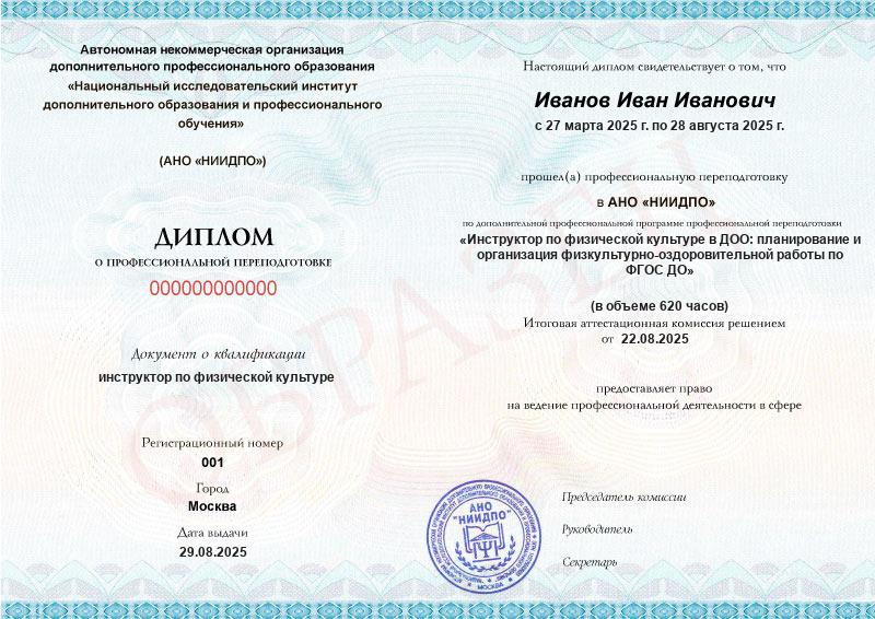 Да, документы оформляются на бланках с защитой от подделок, заполняются на русском языке, в них ставится печать АНО «НИИДПО».