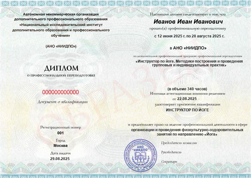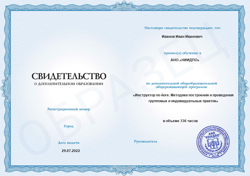Инструктор по йоге. Методики построения и проведения групповых и индивидуальных практик (340ч)