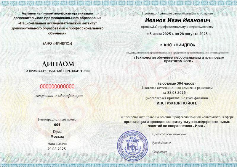 Да, выданный АНО «НИИДПО» диплом предоставляет вам право на ведение профессиональной деятельности в соответствии с квалификацией.
