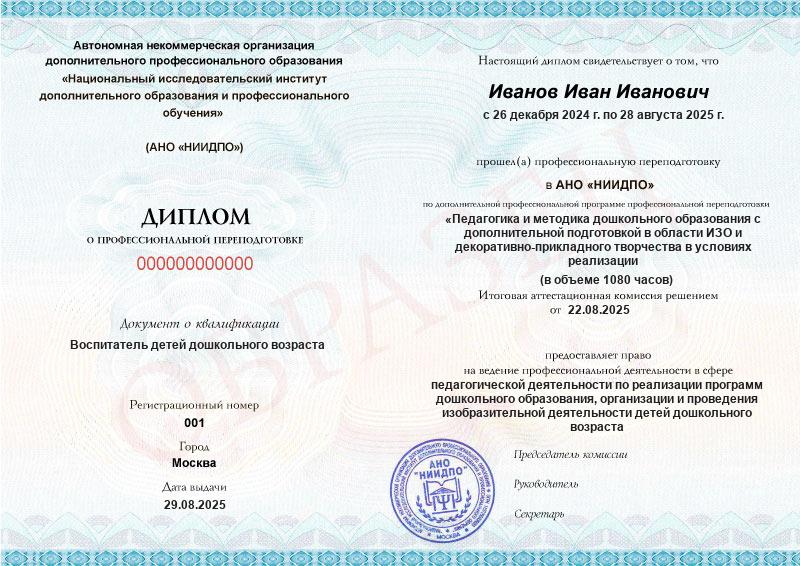 Да, документы оформляются на бланках с защитой от подделок, заполняются на русском языке, в них ставится печать АНО «НИИДПО».