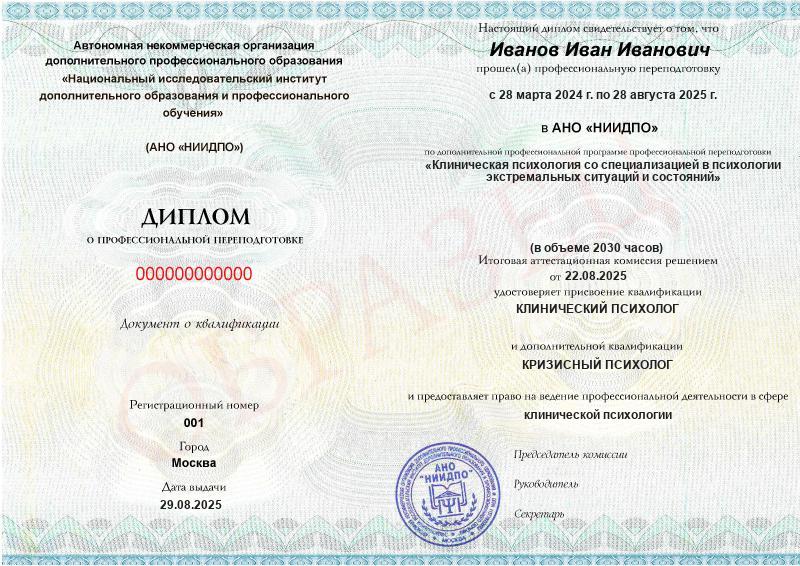 Я профессиональный медицинский работник и прошёл переподготовку по клинической психологии. За месяцы обучения я значительно \"вырос\" в образовательном и профессиональном плане. Теперь я знаю, насколько взаимосвязаны тело и психика человека и как ему помочь при нарушении физического и психического здоровья, как укрепить его и не позволить в дальнейшем травмироваться. Выражаю благодарность всему составу НИИДПО, особенно преподавателям. В дальнейшем планирую повышать свою квалификацию и расти в профессии с НИИДПО. Я рекомендую всем, кто хочет получить хорошие знания по доступной цене учиться в данной образовательной организации.