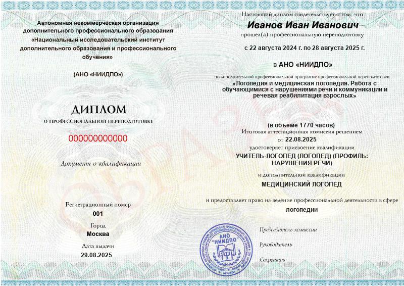 - 2 квалификации: Учитель-логопед (логопед) (профиль: нарушения речи) + Медицинский логопед