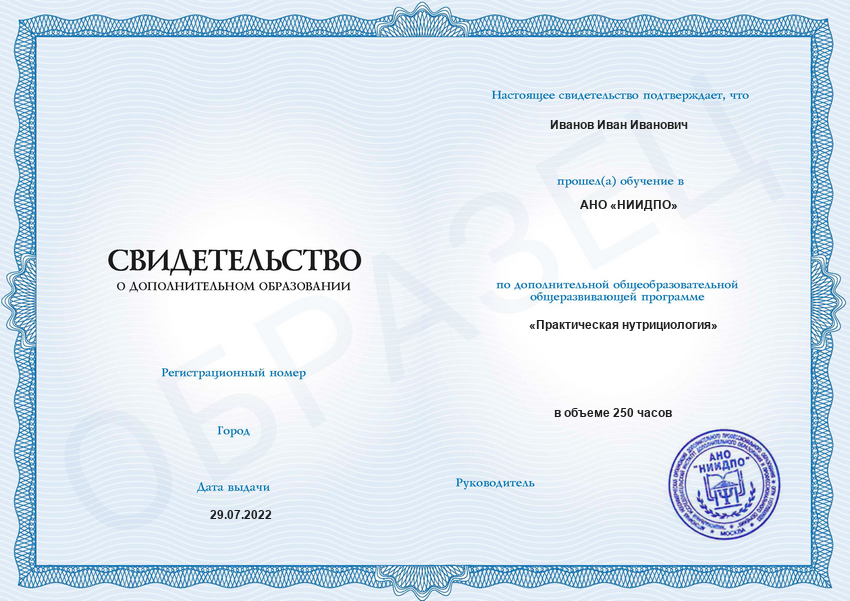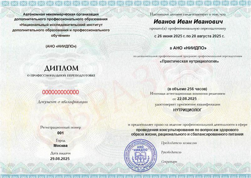 Меня зовут Ирина. Я была слушателем профессиональной переподготовки «Практическая нутрициология». Об этом курсе узнала от коллеги по работе. Ее отзыв вдохновил на дистанционное обучение в АНО «НИИДПО». Нисколько не пожалела о своем выборе. Нужная информация, интересные практические задачи, вполне адекватный режим обучения для работающего человека помогли мне получить еще одну интересную профессию. Рекомендую обучение в этой организации. Сама система ДО вполне приемлема для использования даже возрастными людьми. Новым слушателям желаю интересного обучения и плодотворных успехов в своих начинаниях. ДО АНО «НИИДПО» четко выполняет свою работу по консультированию, подготовке, обучению и выдаче документов слушателям курсов. Всем преподавателям и организаторам ДО АНО «НИИДПО» большое спасибо!