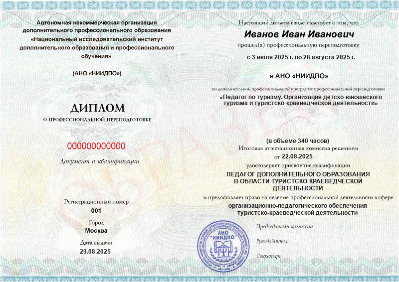 Педагог по туризму. Организация детско-юношеского туризма и туристско-краеведческой деятельности (340ч)