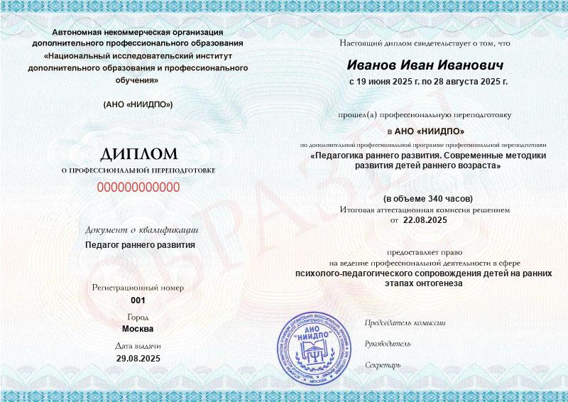 Студент, желающий поступить в АНО «НИИДПО», должен предоставить справку из образовательной организации. Независимо от срока окончания обучения по программе дополнительного образования, диплом о профпереподготовке выдаётся только после предъявления документа о получении среднего профессионального или высшего образования.
