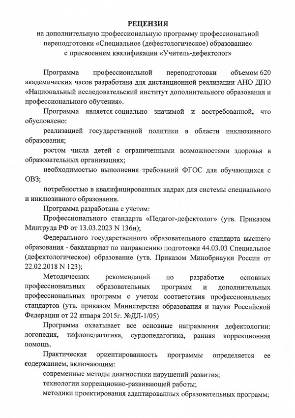 Обзор программы профессиональной переподготовки «Специальное (дефектологическое) образование» с присвоением квалификации «Учитель-дефектолог»