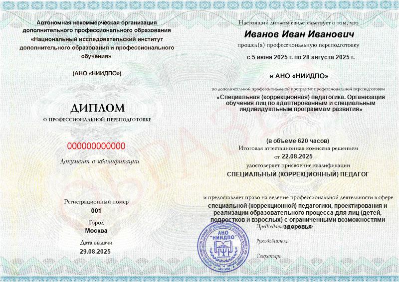 Обзор программы профессиональной переподготовки «Специальная (коррекционная) педагогика. Организация обучения лиц по адаптированным и специальным индивидуальным программам развития» с присвоением квалификации «Специальный (коррекционный) педагог»