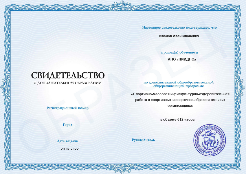Да, документы оформляются на бланках с защитой от подделок, заполняются на русском языке, в них ставится печать АНО «НИИДПО».