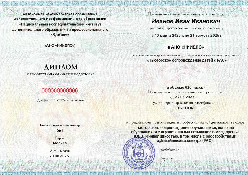 Да, документы оформляются на бланках с защитой от подделок, заполняются на русском языке, в них ставится печать АНО «НИИДПО».
