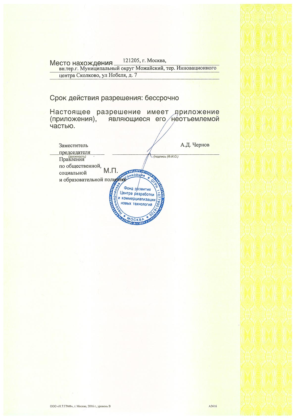 Разрешение на осуществление образовательной деятельности от «Сколково»